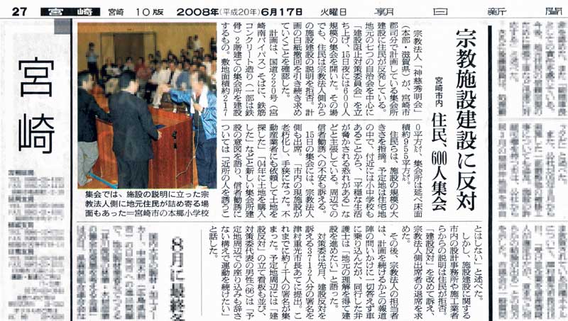 内外からの批判を黙殺する神慈秀明会に、ネットを活用した拠点建設反対運動が横浜で起きます。