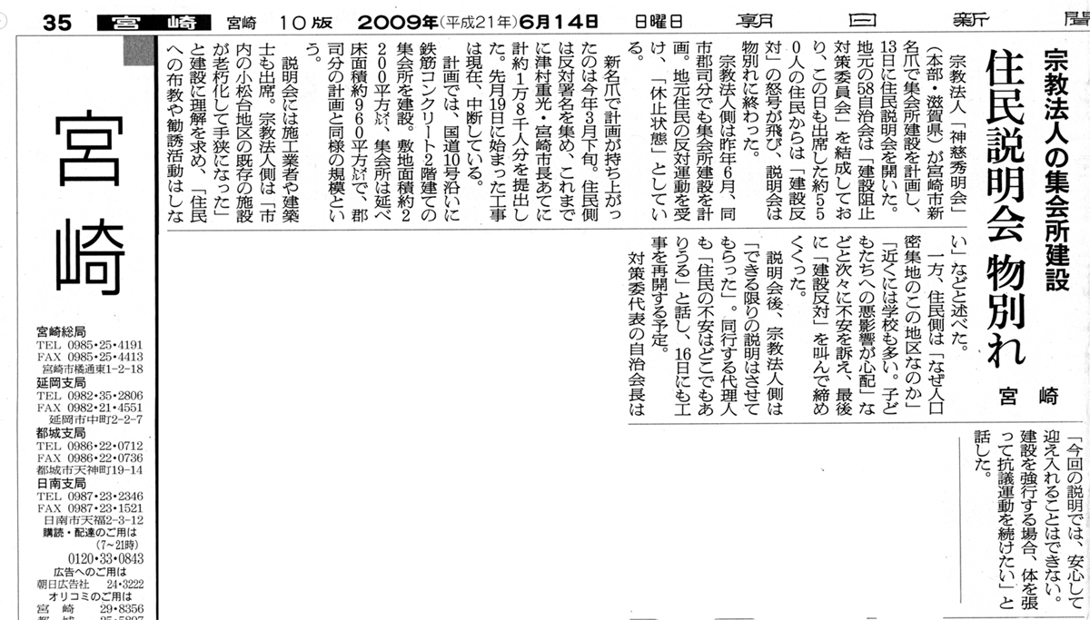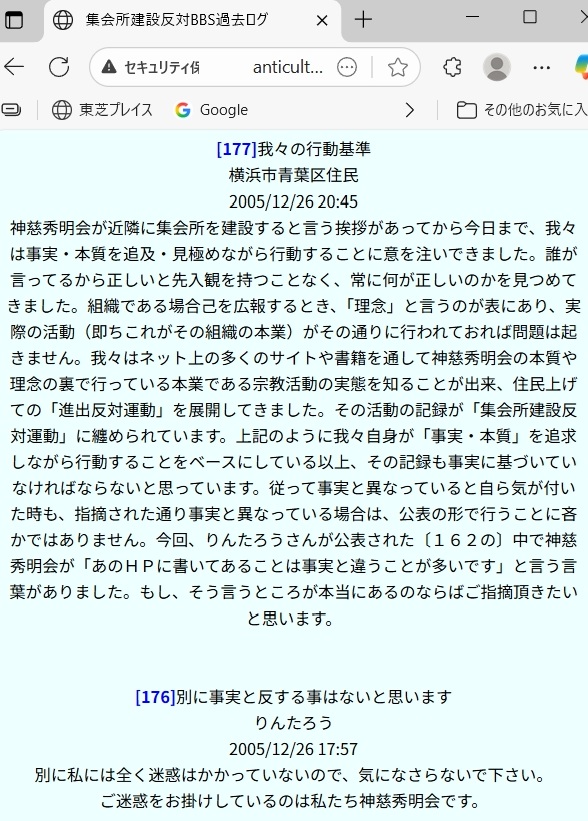 サイト上に「神慈秀明会・集会所建設反対掲示板」を立ち上げました。