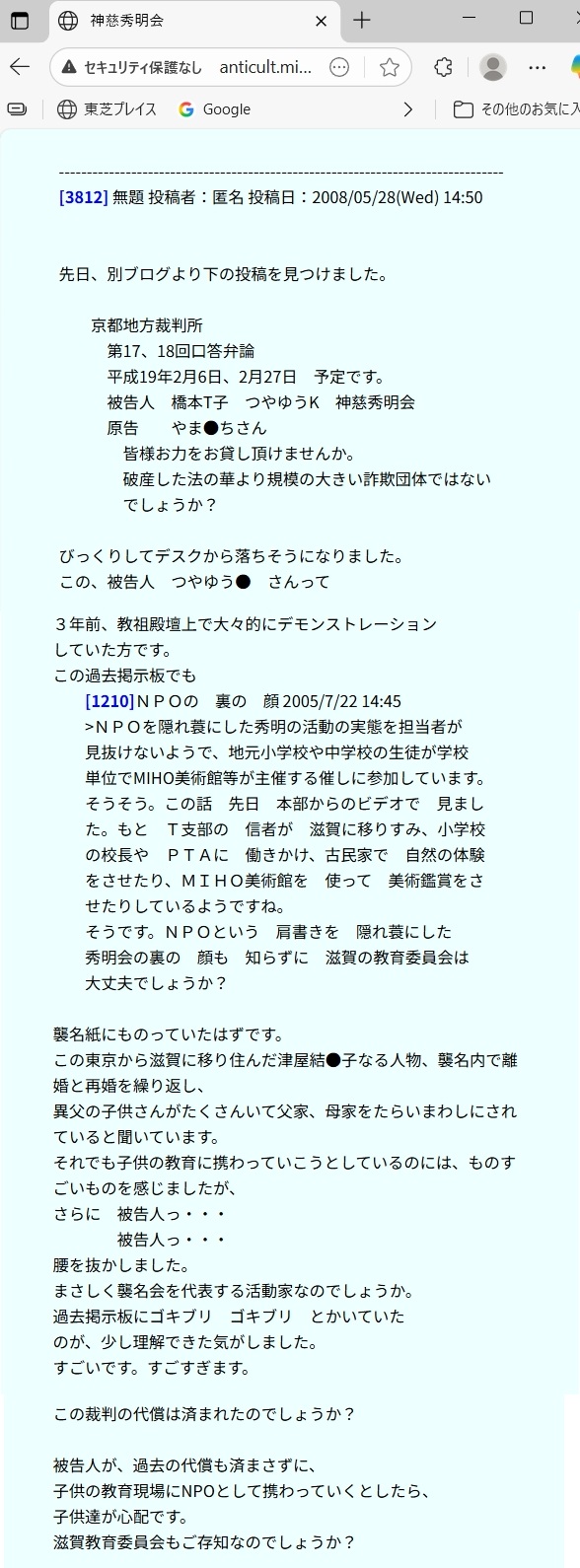 神慈秀明会にとって不都合な真実を明らかにしたサイトのおかげで子どもたちをカルトから守ることができました。