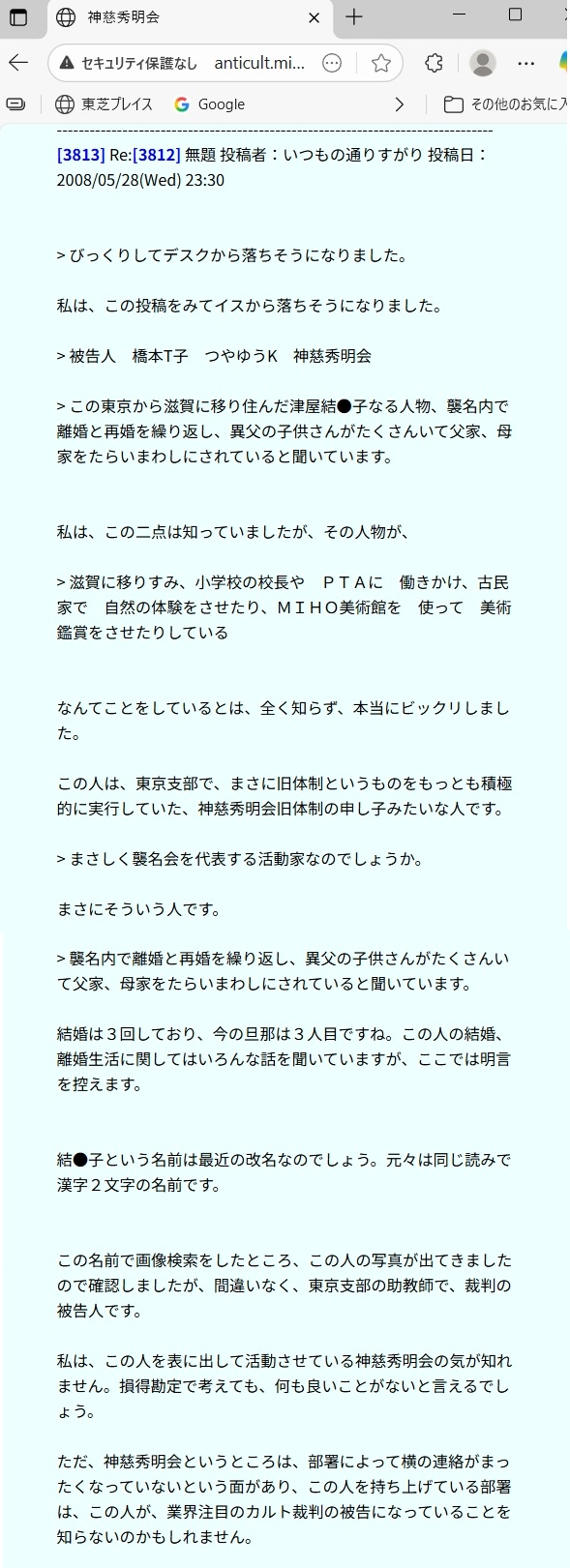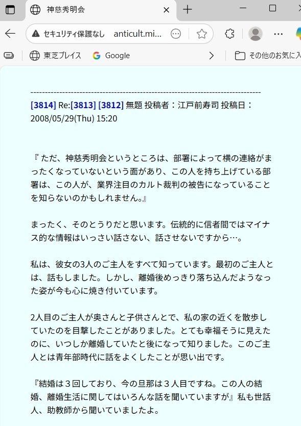2006年の投稿ですが、見事に現在の神慈秀明会を予見されています。